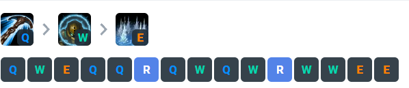 이후 w는 보호막과 마법 추가 대미지를 주기 때문에 두 번째로 마스터해줍니다 마지막으로 e를 마스터해줍니다